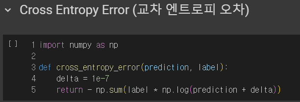 2. Cross Entropy Error (교차 엔트로피 오차)